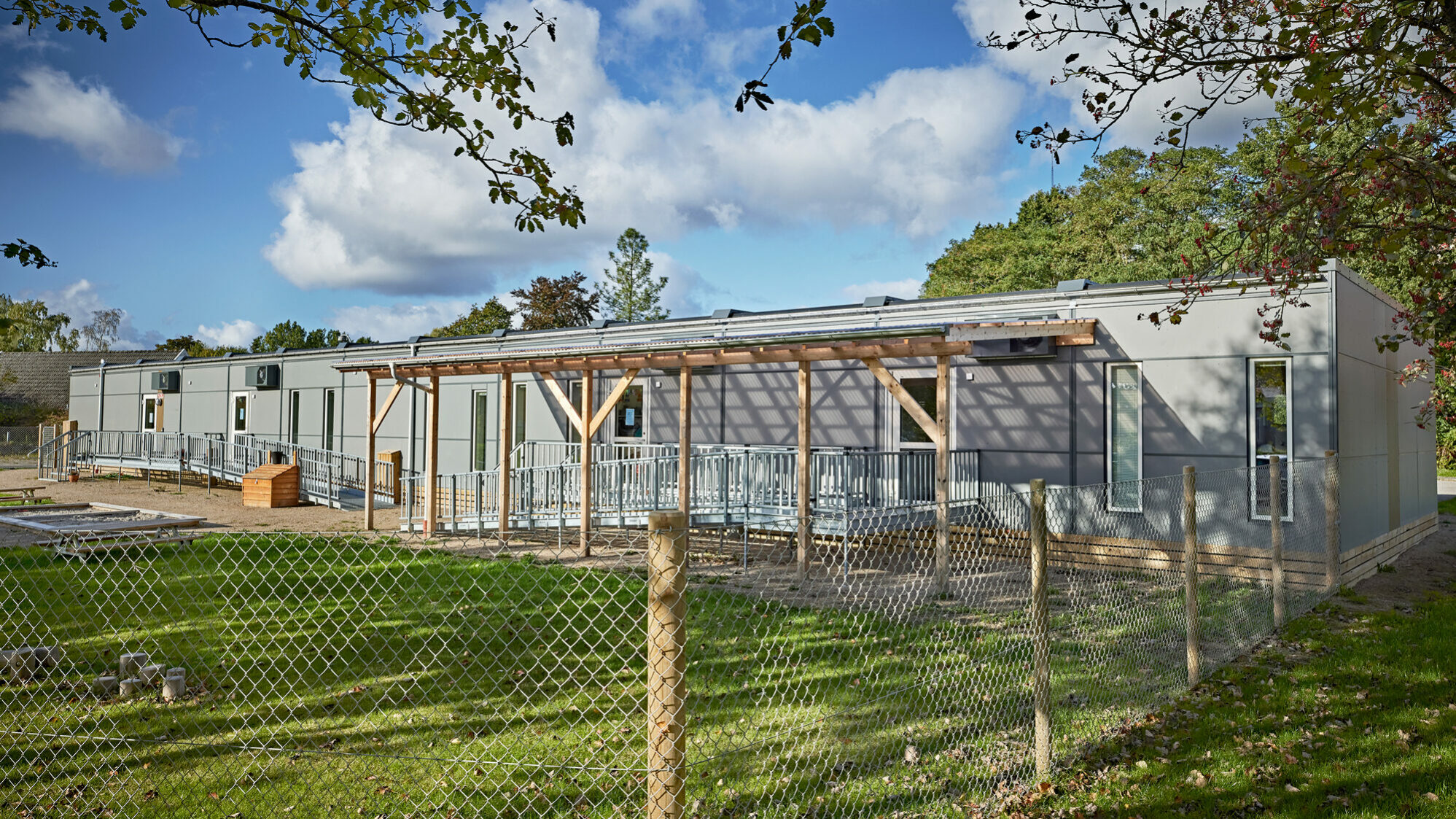 En ny daginstitution er i fuld gang med at blive bygget i Lejre Kommune. I mellemtiden har børnene fra Børnehuset Skovvejen fået masser af midlertidig plads at boltre sig på – i lokaler, som er specifikt designet til skoler, børnehaver og vuggestuer.