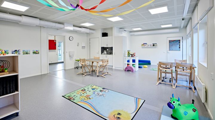 “Akustikken er god, og det er nogle dejlige og store rum med et rart naturligt lys fra de mange vinduer. Og så er det fedt, at der er persienner på alle vinduer og døre, så vi ikke skal tænke på, hvordan vi får lukket af, når børnene skal sove. Det er lidt luksus,” fortæller hun videre.