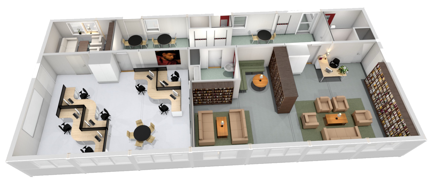 - Personalarbetsrum med pentry och eget samtalsrum