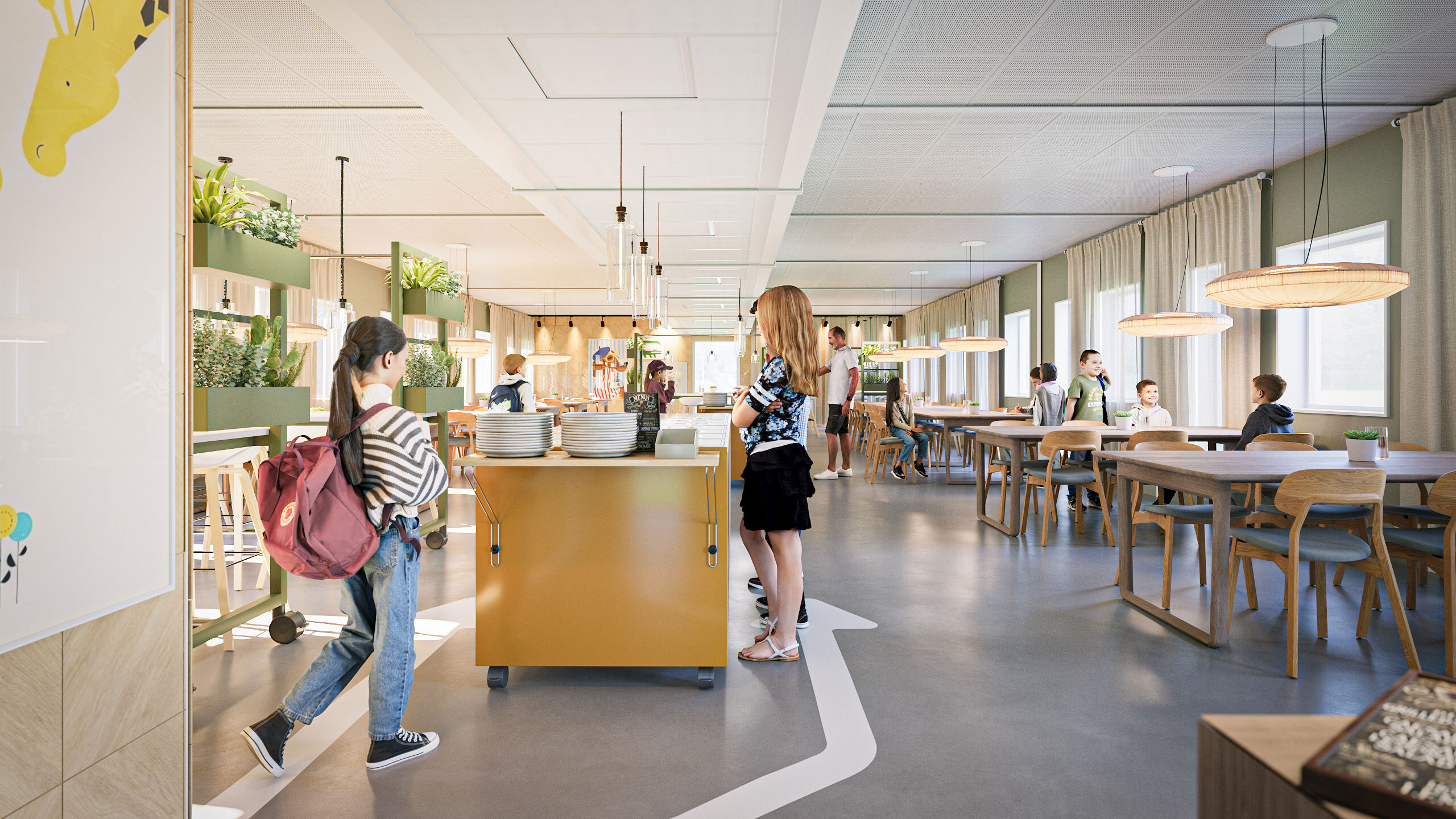 För större ytor som matsalar kan vår nya modul K3000 användas. Den är utvecklad för att skapa stora, öppna och ljusa rum där många människor kan vistas samtidigt utan att det känns trångt eller stökigt.