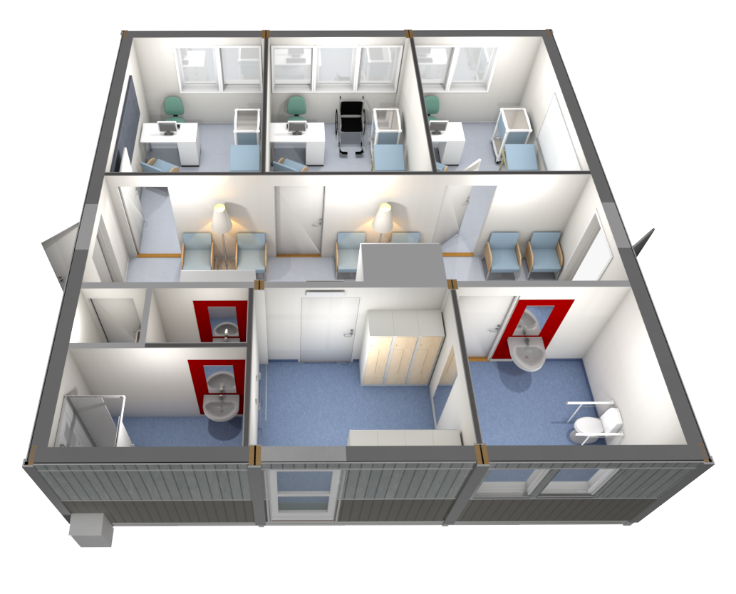 - Kan lätt kompletteras med gemensamhetsytor och personalutrymmen och byggas ut med fler enheter
